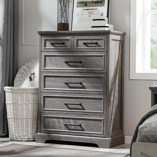 6 Drawer Dresser for Bedroom, Farmhouse 46" High Wooden Country Style Drawer Chest, Wide Metal Handle Pull-out Storage Cabinet