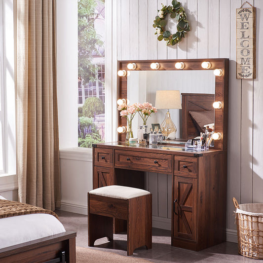 JXQTLINGMU 43 inch Farmhouse Makeup Vanity Set with Mirror and Lights