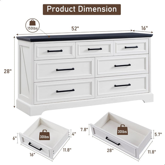 7 Drawer Dresser for Bedroom, Farmhouse Rustic Wood Dresser Chest of Wide Drawers for Living Room